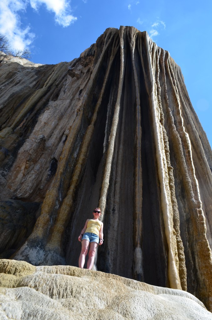 The petrified falls loomed overhead like Elsa from Frozen had turned them to solid rock with her magic Disney powers. They also looked a bit like an uber real Santa’s magic cave spilling out over the edge of a cliff. Water cascaded down them. I climbed up a slope for this picture with my grippy sandals, so not daunting. The view over what was surely a national park of some kind was amazing but I didn’t want to risk carrying my camera so close to the edge.