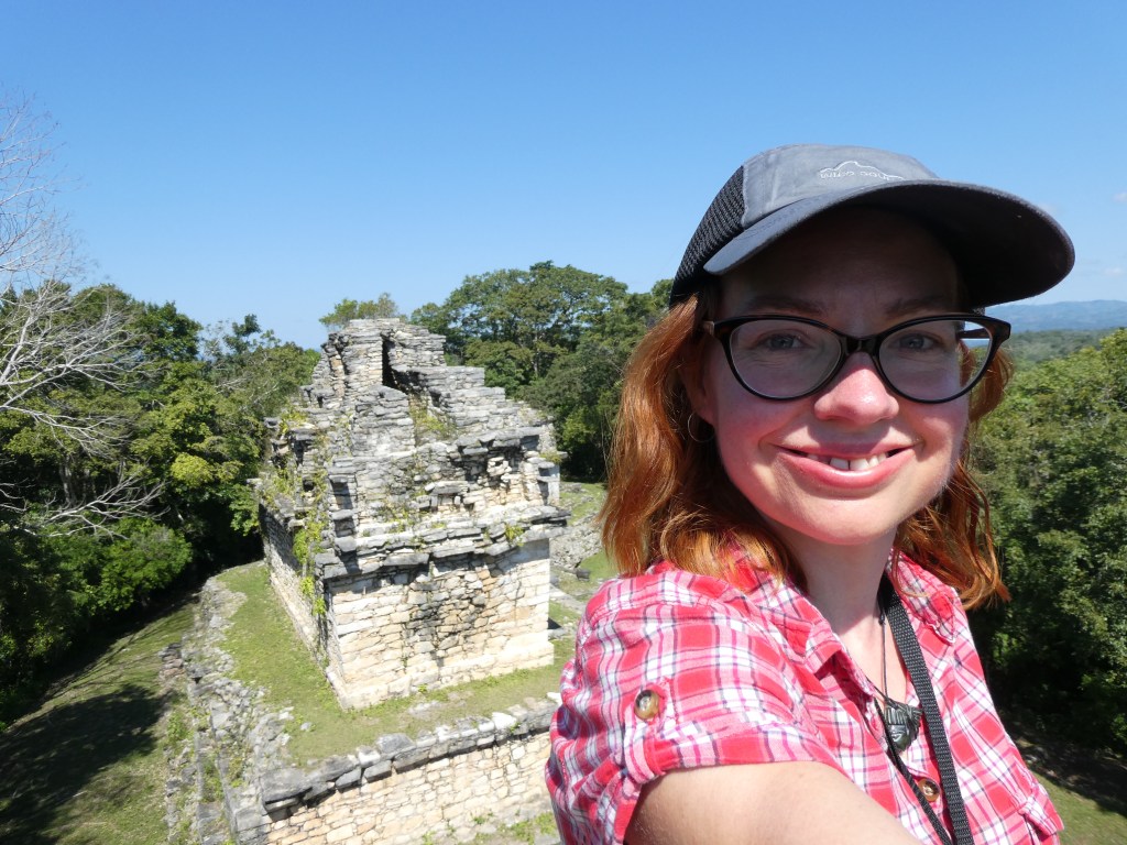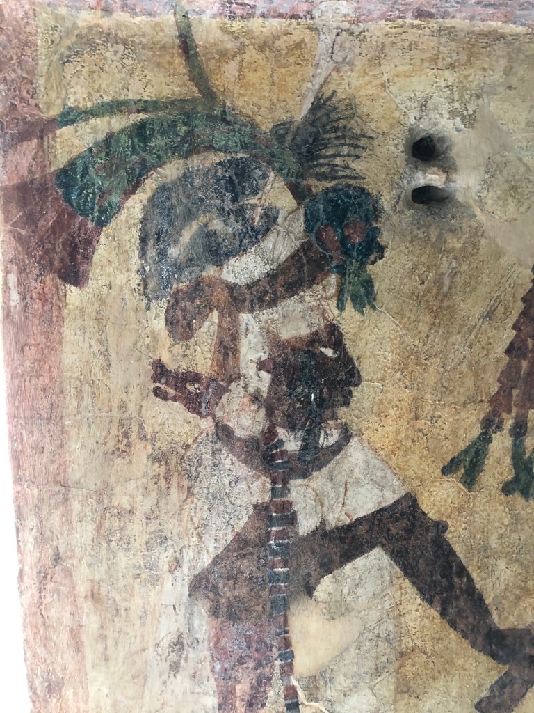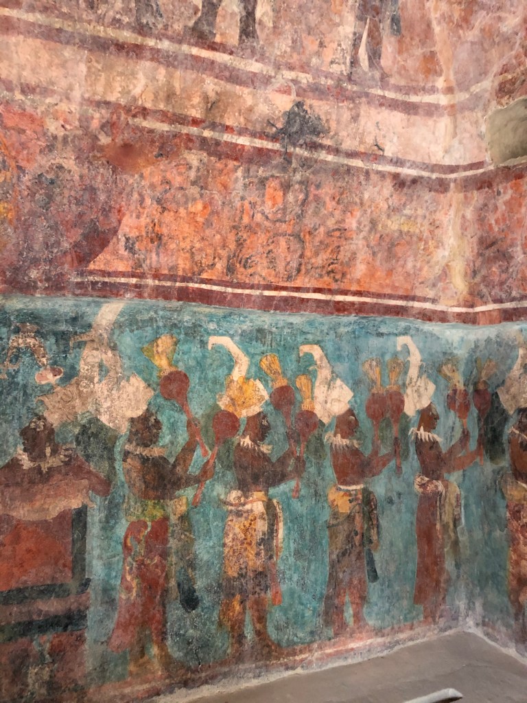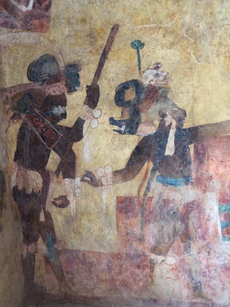 Rosalita led us to the not so world famous Laconda ruins which consisted of one structure on top of a hill. Another observation Edificio???? Manuel reported that this was all that remained of another Mayan city. It was probably a day’s walk from Bonampak which would have been a doddle for the Mayans who walked sacbes (white roads) for trade and other purposes. Could the actual people depicted in the Bonampak murals have sat on the edge of this very structure like I was right then? I had no way of dating the Lacondan building to know if it was contemporary with the murals (790 AD), but it was extremely cool to feel connected to the people in the murals in that particular moment. The vibe was very tranquil, looking out into the dense jungle. We sat there chilling and briefly forgetting about killer mutant flies.