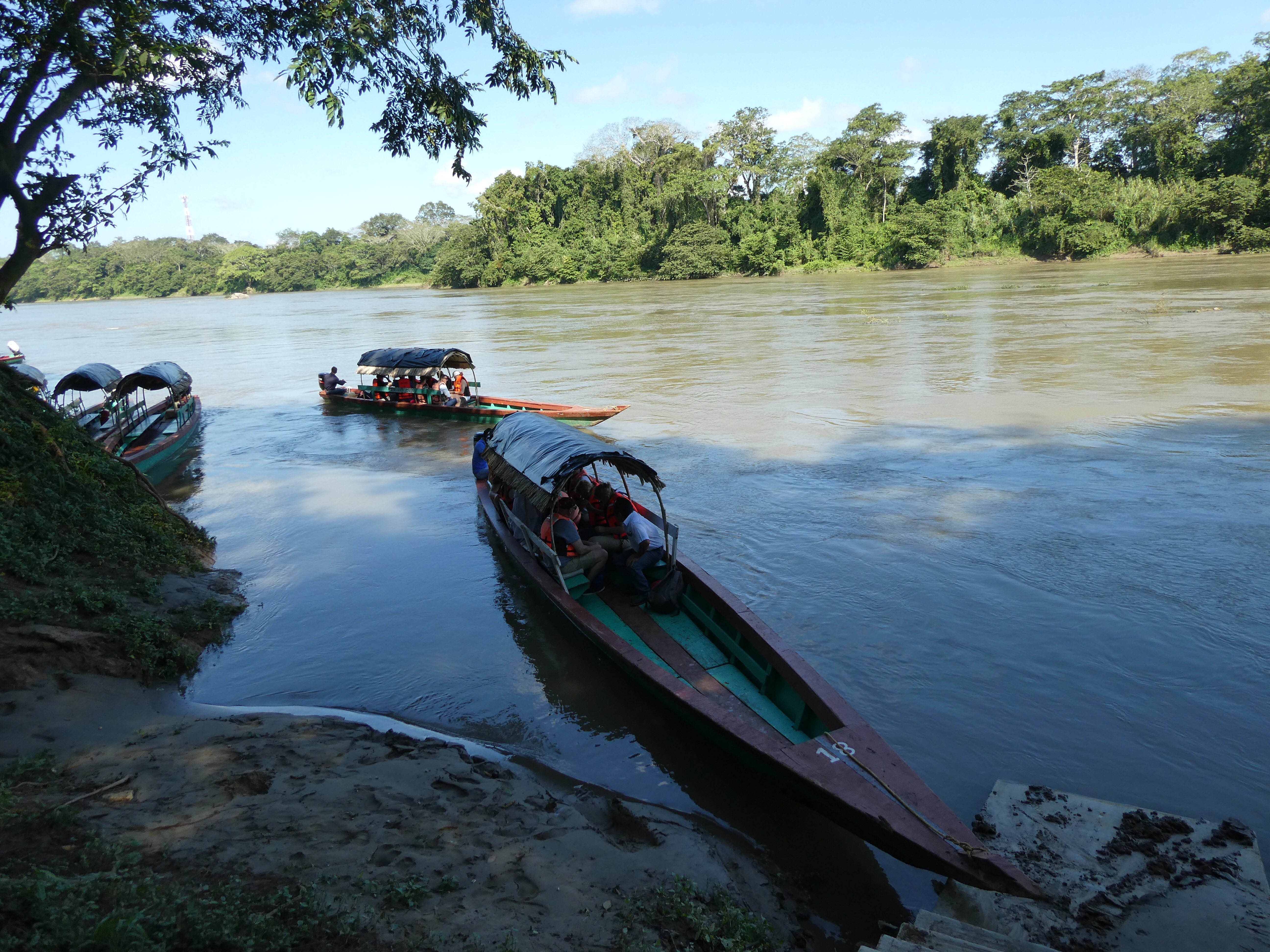 The remainder of the afternoon consisted of killing time before the transport picked me up. There were two shops in the vicinity – one was a house with a beer fridge and a huge pile of life jackets, the other had more products and a small monkey on the cashier’s lap. No signal or wifi. I looked at the garden and chilled on my porch with some downloaded podcasts. Some Chinese randoms turned up with a dubious printout of a booking, Yucatan license plates and asked if there were any ruins on the area. Well, we weren’t here for the beer fridge, lady!?!?! I struggled to conceive of any possible reason for driving aimlessly through the Lacondan jungle on dirt roads with bugger all English or Spanish if you had no idea that world class ruins were around the corner. To top it all off, the woman demanded an early dinner at 5pm and sported a steel rod in her leg. She could barely walk 10 feet without assistance. The Mayan ruins with sheer vertical steps would be a barrel of laughs for her. It was a very random incident in people watching.
