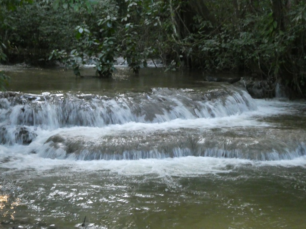 Rosalita had one more surprise up her sleeve. Did we want to visit a cave? Yes please! She led us to a rushing river with muddy banks and waded straight in, beckoning us to follow. Oh Rosalita … the flip flops … it all becomes clear now … I removed my Kathmandu walking shoes and merino socks. Although I knew payback would be a blistery bitch with wet feet later, I gingerly waded into the river. The water only went up to ankle height at best but the current was strong and it was like walking on sharp rock edges in parts. Stupid baby soft Westerner tourist feet. One false move and it would be a faceplant transplant. Manuel helped me across, leading me to the softer rocks. We then clambered over a short, muddy vertical wall before crunching the jungle undergrowth barefoot. I briefly wondered whether my travel insurance would cover me if something hairy lurked under the leaves.